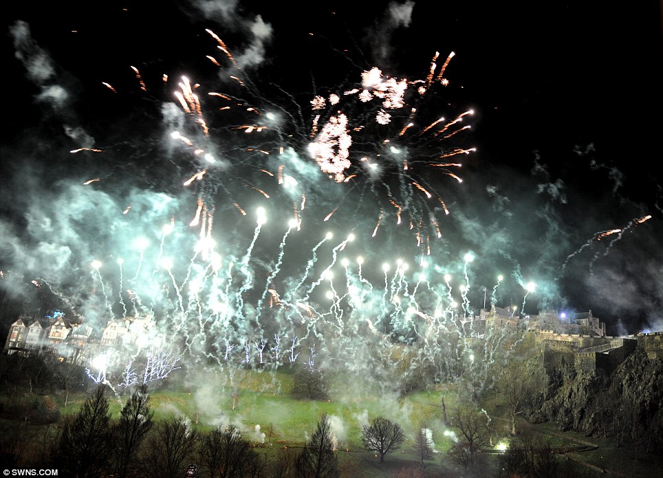 EDINBURGH: Fireworks explode over Ethe Castle during the Hogmanay street party celebrations as the clock hit 12 last nightNORTHUMBERLAND: Tar Barrels are lit in readiness for the traditional Allendale New Year Tar Barrel Parade in Allendale, Northumberland to mark